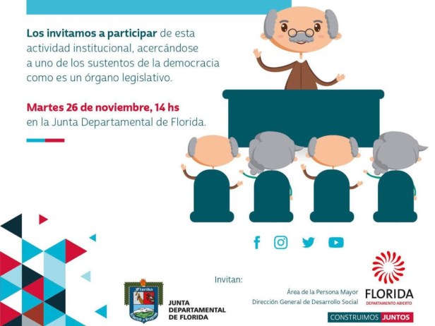 El próximo martes 26, a las 14:00 horas, en la Junta Departamental de Florida, personas mayores de Florida participarán del Programa “Edil por un día”.