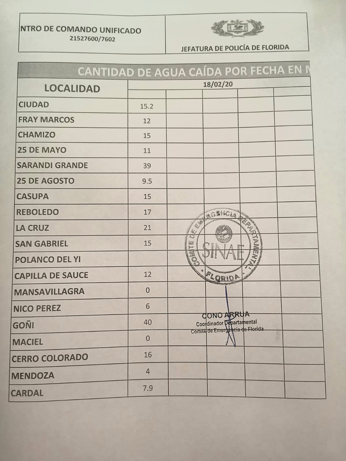 Así lo confirmaron el jefe del Centro Coordinador de Emergencia, Cono Arrúa, que indicó sobre los reportes desde diferentes localidades. Y el Jefe de la estación de Inumet, en Florida, Luis Martínez.