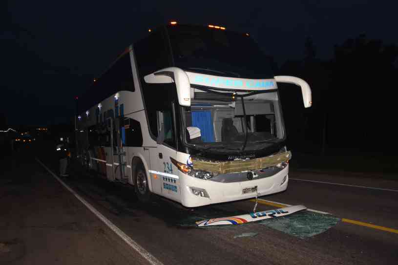 Una vez allí se ubica a un ómnibus de transporte de pasajeros el que había embestido un equino, a consecuencia del impacto chofer y guarda sufren lesiones siendo trasladados a sanatorio local donde fueron asistidos por médico de guardia.