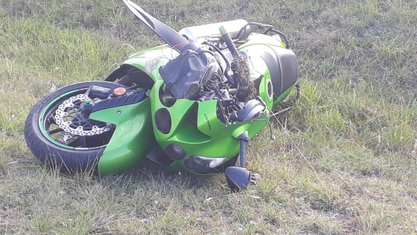 Unos 30 después quedó la moto sobre la margen izquierda, visiblemente destrozada en su parte delantera.}