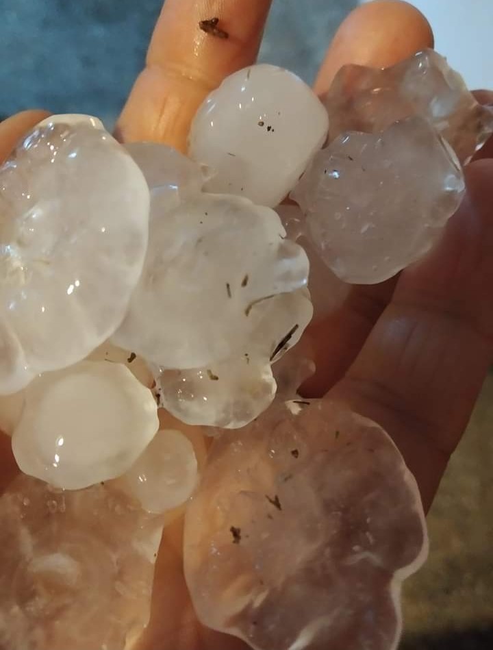 Martínez reportó granizo en 25 de Agosto, 25 de Mayo y Cardal con imágenes elocuentes respecto de la caída de la formación de hielo durante el fenómeno.