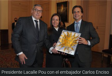 En el Palacio Estévez, el nuevo embajador uruguayo en Argentina, Carlos Enciso recibió por parte del presidente de la República, Luis Lacalle Pou, las cartas credenciales y el pabellón nacional antes de partir hacia el vecino país, según reporta Montevideo Portal.