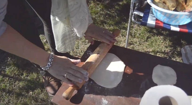 La invitación fue en el marco de la feria que realizó el Frente Amplio en Mendoza Chico. Allí, “La nona”, una vendedora de comidas al paso, invitó a la candidata del Frente Amplio, Mariana Lorier, a amasar tortas fritas.