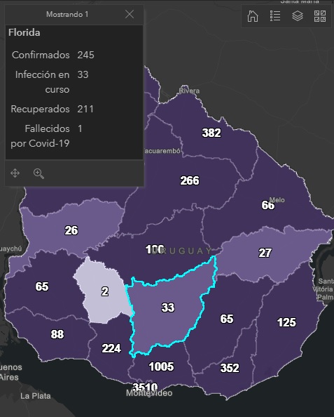 De acuerdo al registro oficial Florida lleva confirmados 245 casos confirmados desde el inicio de la pandemia. De ellos, 211 personas ya se recuperaron, una falleció y hay 33 personas con casos activos.