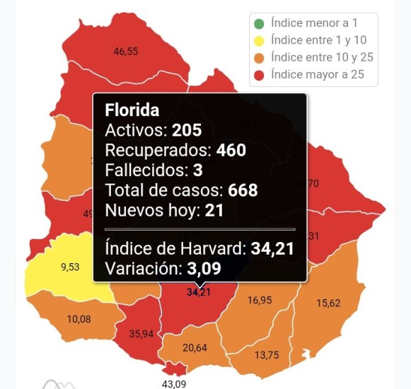 Así lo indicó el reporte del Sistema Nacional de Emergencias esta noche. Florida tiene 205 casos activos y una variación de más de 3, en el índice de Harvard.