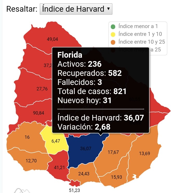 En otra jornada récord, el departamento reportó 31 nuevos casos y volvió a subir su índice de Harvard. Se mantiene en rojo.
