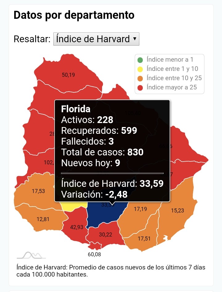 En otra jornada récord, el departamento reportó 9 casos nuevos y bajó el índice de Harvard. Se mantiene en rojo.