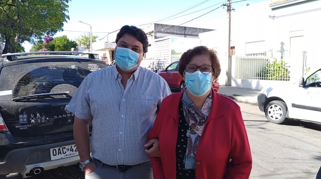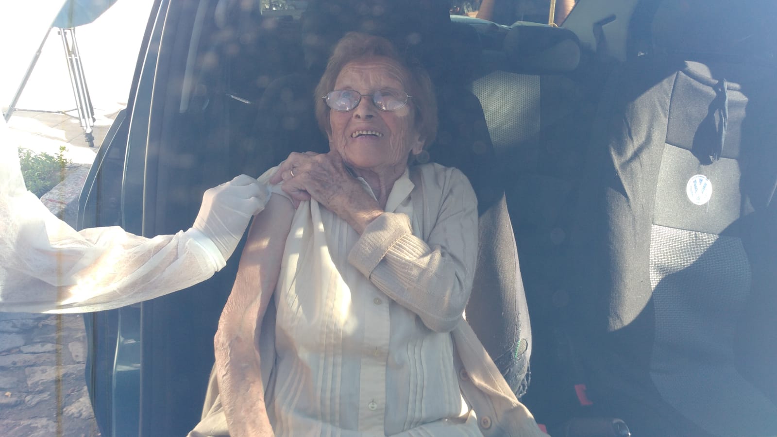 Su estado físico -“tengo una pierna ahí más o menos”- le impidió bajar. Por eso, los vacunadores concurrieron con todo preparado hasta el auto.