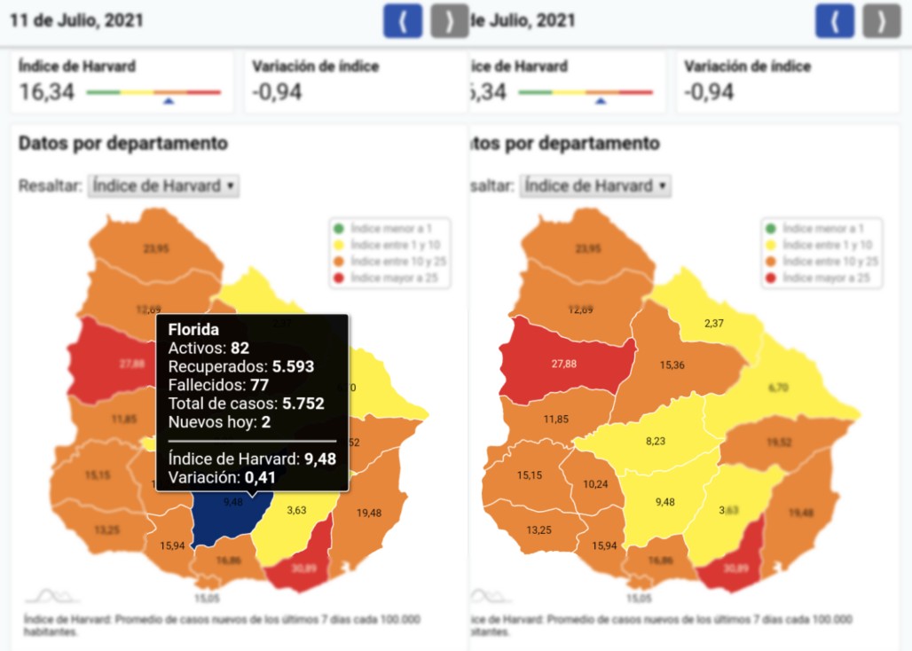 Florida solo reportó dos casos nuevos. El departamento ingresó este sábado en el color amarillo del índice que mide el riesgo.