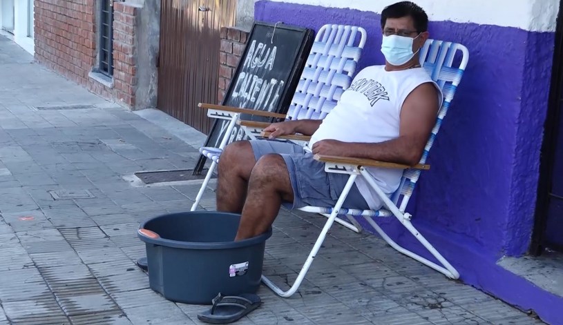 Luis resolvió de esa manera: botella congelada, agua y pies al latón. “Cada tanto me mojo las muñecas y la nuca”, dijo después de atender a uno de los tantos clientes que llegaban a su comercio en la calle Saravia.