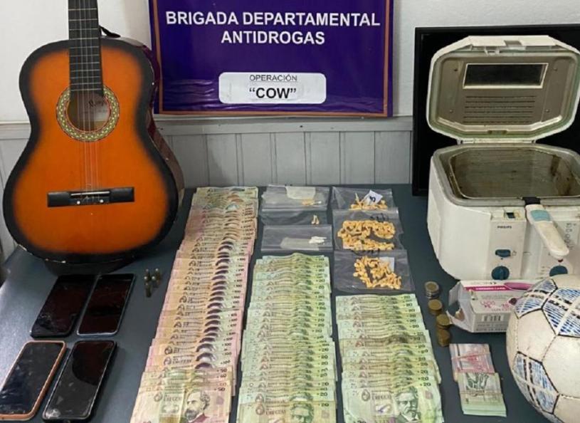 Los agentes lograron incautar 87 dosis (chasquis) de sustancia similar a pasta base, 5 cartuchos calibre 32, dos motos y un motor denunciados como hurtados, $16.700 (dieciséis mil setecientos pesos uruguayos) en billetes de diferente denominación y fueron detenidos 2 adolescentes, 3 mujeres y 5 hombres mayores de edad.