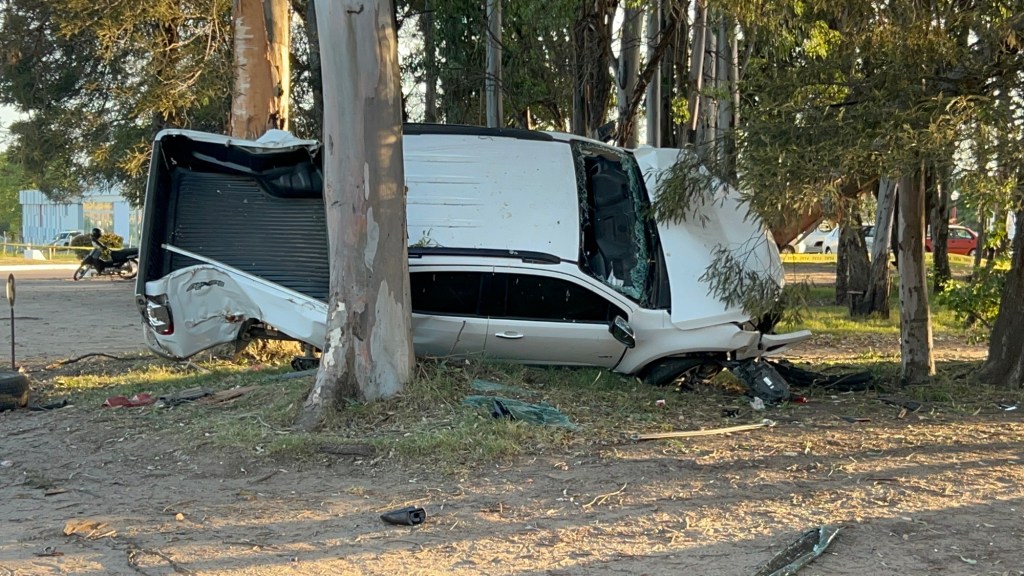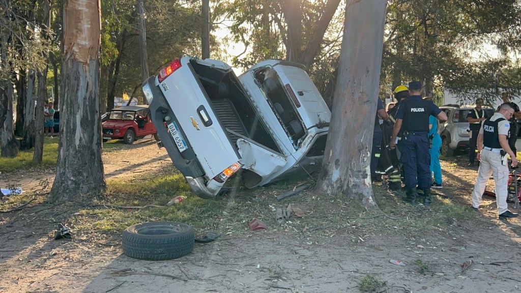 La camioneta quedó entre dos árboles y se estimó que la altura del golpe final fue al menos de tres metros.