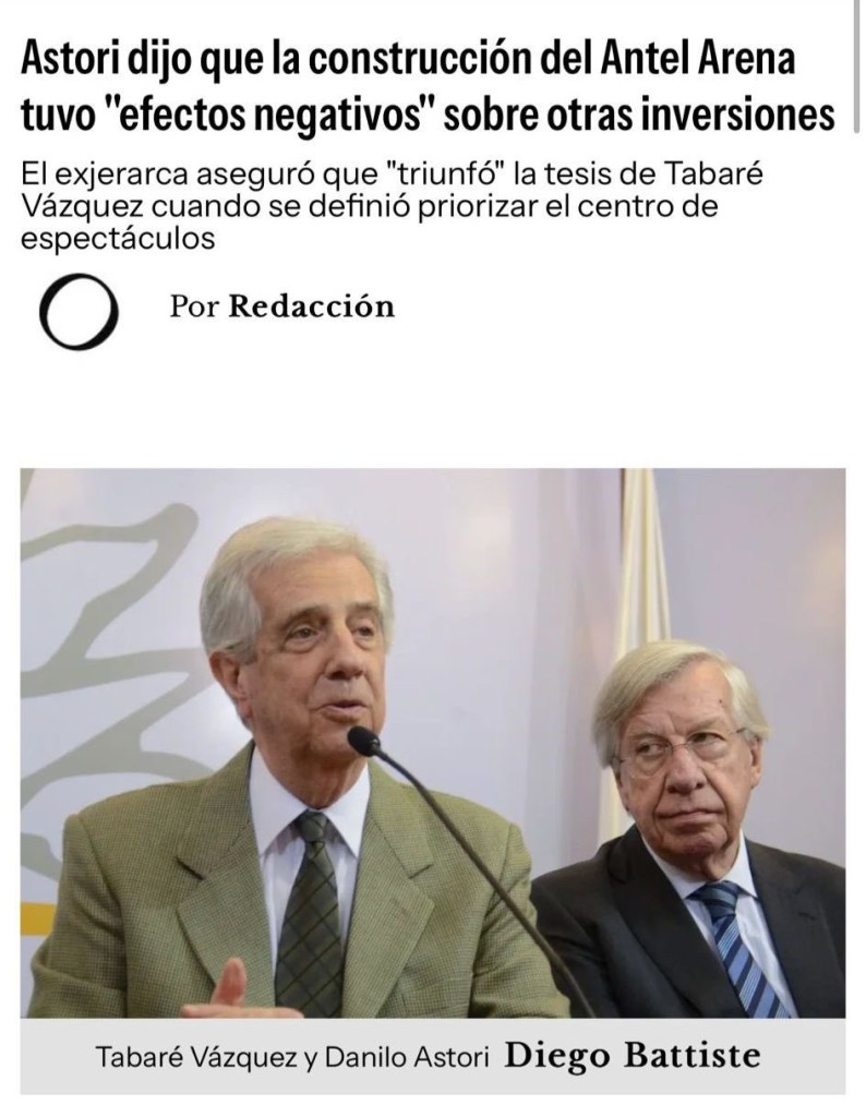 Rodirguez Hunter citó además declaraciones del ex vicepresidente Danilo Astori en las que se indicaba con contundencia que la inversión en el ANTEL Arena generaría efectos negativos en otras inversiones, como por ejemplo la necesaria obra de la represa de Casupá.