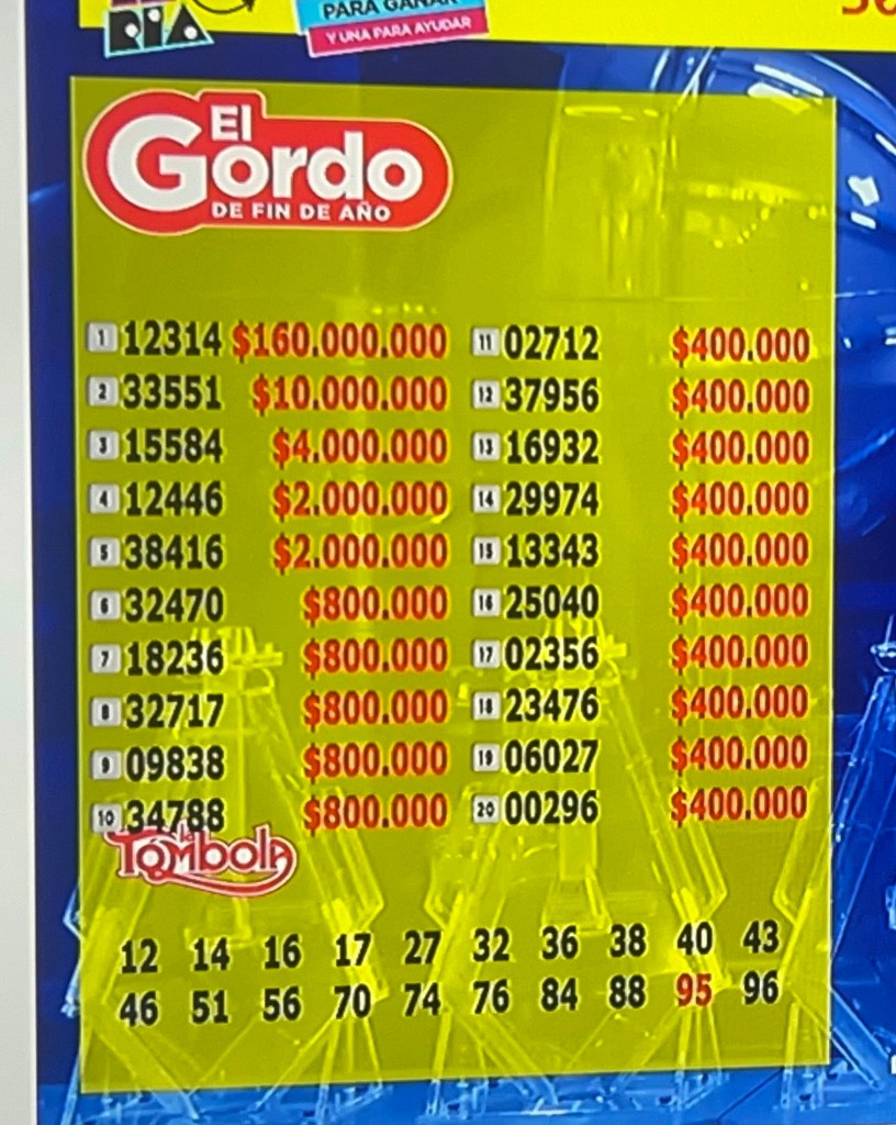Los premios adicionales incluyeron 2 millones para el cuarto y quinto lugar, 800.000 pesos del sexto al décimo puesto, y 400.000 pesos para los números del undécimo al vigésimo lugar.