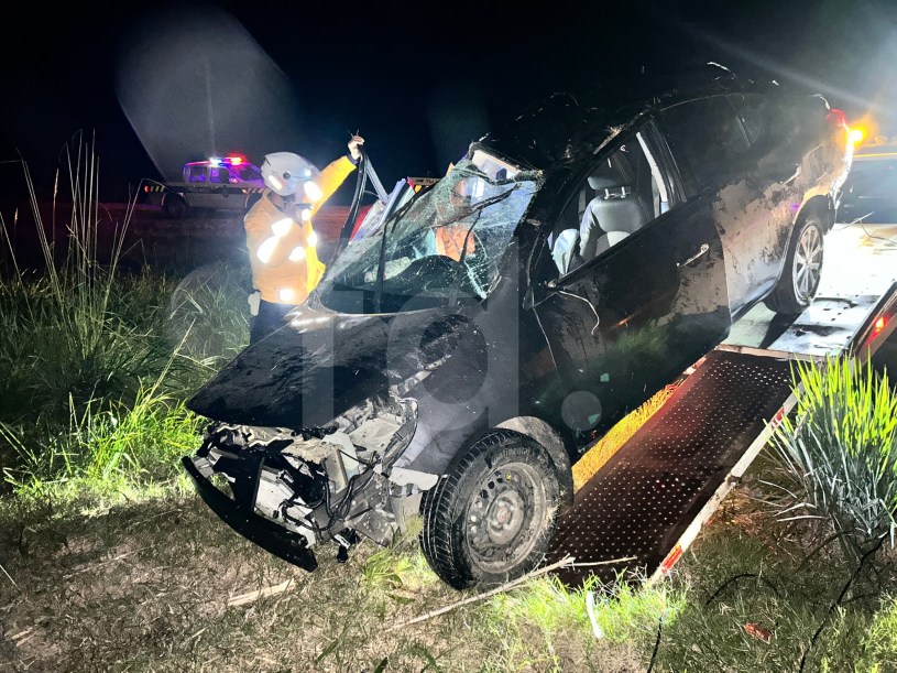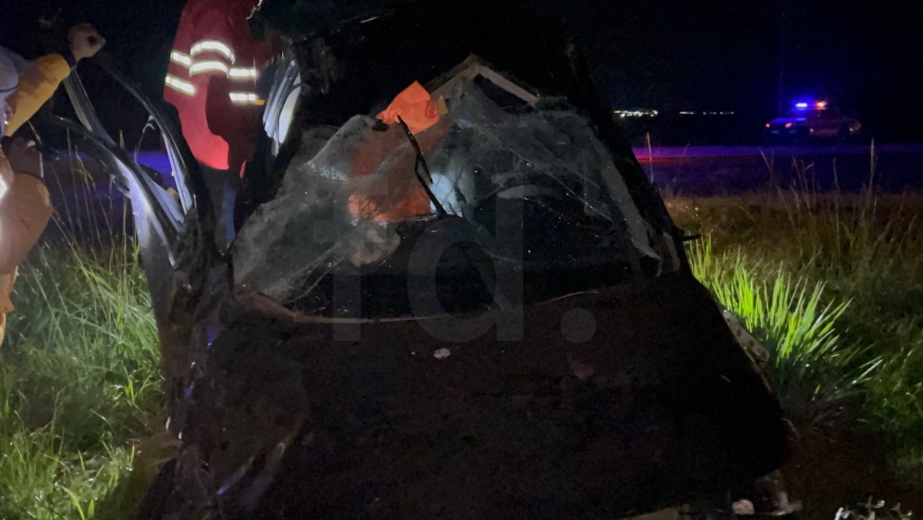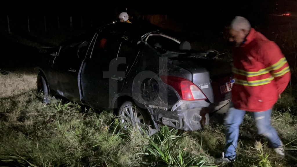 El coche dio varias vueltas, perdió varias partes, y terminó destrozado a varios metros de la ruta.