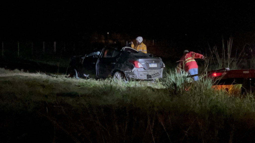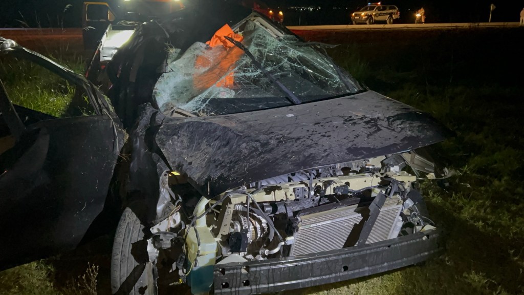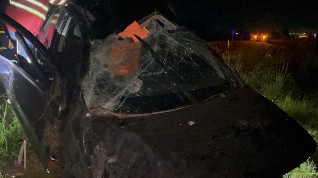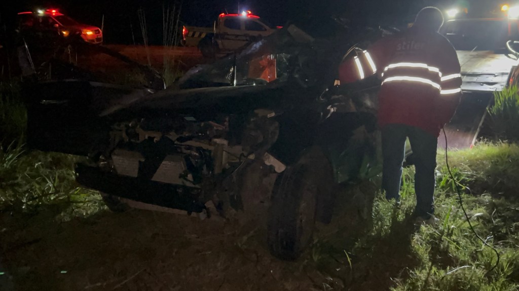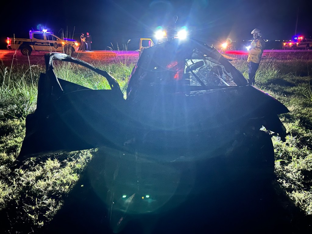El coche dio varias vueltas, perdió piezas durante el impacto y terminó completamente destrozado a varios metros de la ruta.