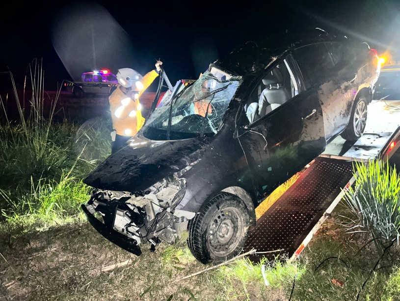 Un automóvil despistó y volcó de forma aparatosa, dejando a sus dos ocupantes con lesiones de consideración.