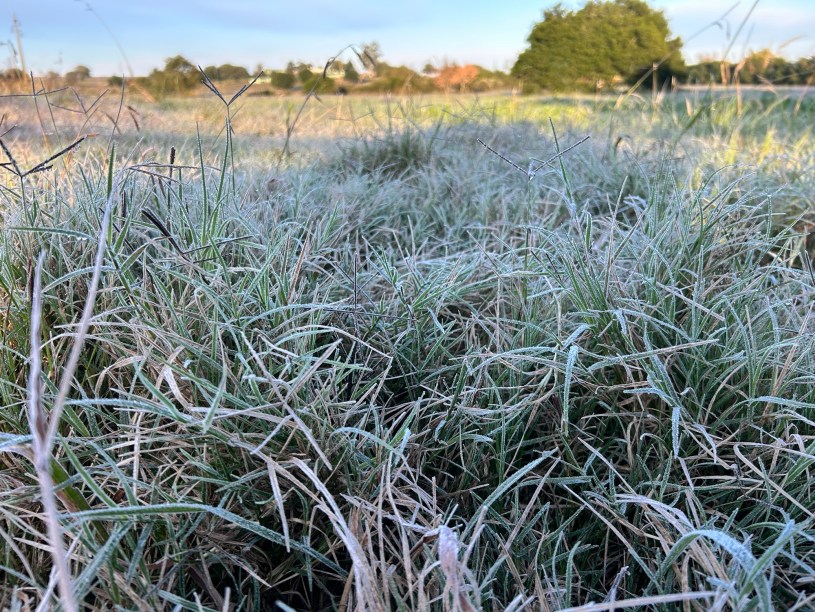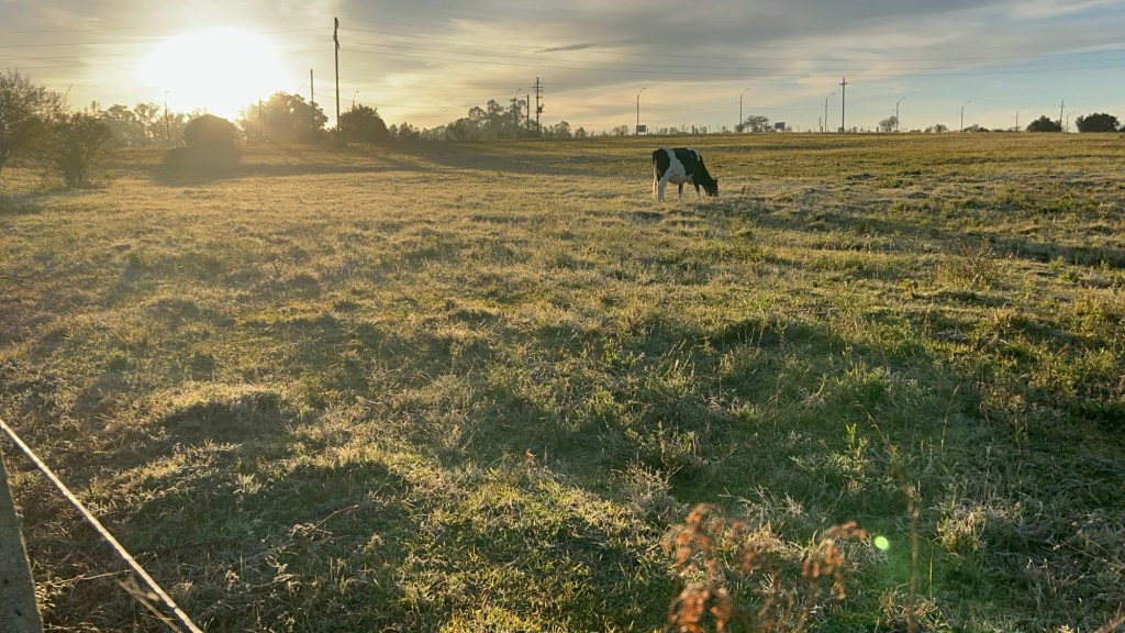 En los campos abiertos y caminos vecinales de Florida, Lavalleja y Treinta y Tres, el primer resplandor del sol mostró una capa de escarcha que cubrió el pasto como si el invierno se hubiera adelantado.