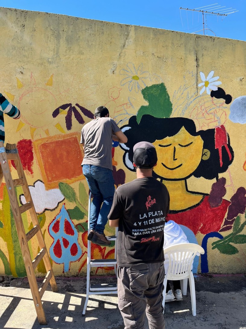 El mural, pintado sobre una de las paredes del Centro, refleja la creatividad de los usuarios y busca transmitir un mensaje positivo de inclusión, esperanza y construcción colectiva.