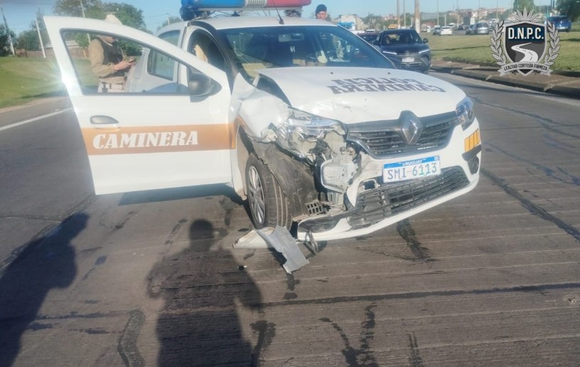 Al llegar a la zona de Santín Carlos Rossi, el vehículo que huía giró en “U”, impactando frontalmente contra un móvil policial.