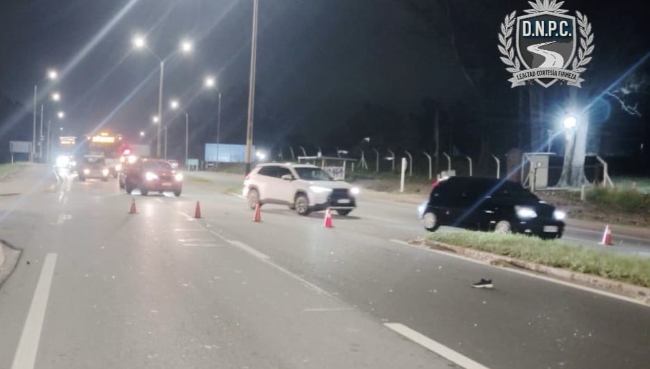 Por causas que aún se investigan, una motocicleta que circulaba de Oeste a Este embistió a un peatón que intentaba cruzar la ruta de Norte a Sur.
