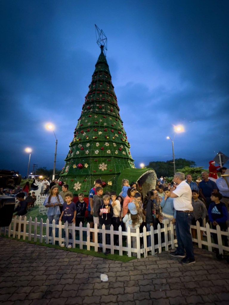 El intendente Carlos Enciso encabezó la ceremonia junto al secretario general, Ec. José Luis Curbelo, e integrantes del equipo de gobierno. Como cada año, el momento más esperado llegó cuando los niños fueron invitados por el jefe comunal a acercarse al pie del árbol para rodearlo y participar del simbólico encendido. Con la activación de la llave de luz, la estructura navideña iluminó el entorno, despertando aplausos y sonrisas entre quienes se acercaron a compartir la instancia.