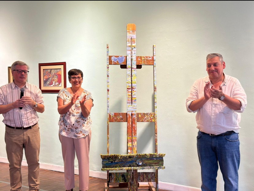 La actividad destacó la trayectoria y el valioso aporte cultural de Giacoya, cuyo legado artístico forma parte del patrimonio cultural del departamento. En el marco del homenaje, la familia del artista realizó una significativa donación a la Intendencia de Florida, entregando objetos personales de su labor creativa: el atril, la paleta y los pinceles utilizados por el propio artista.