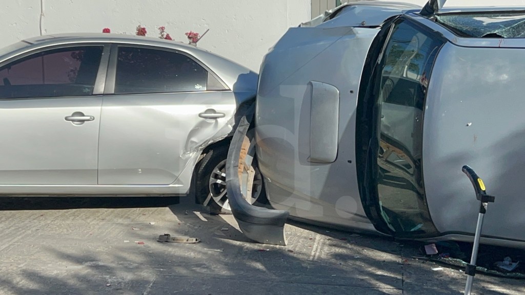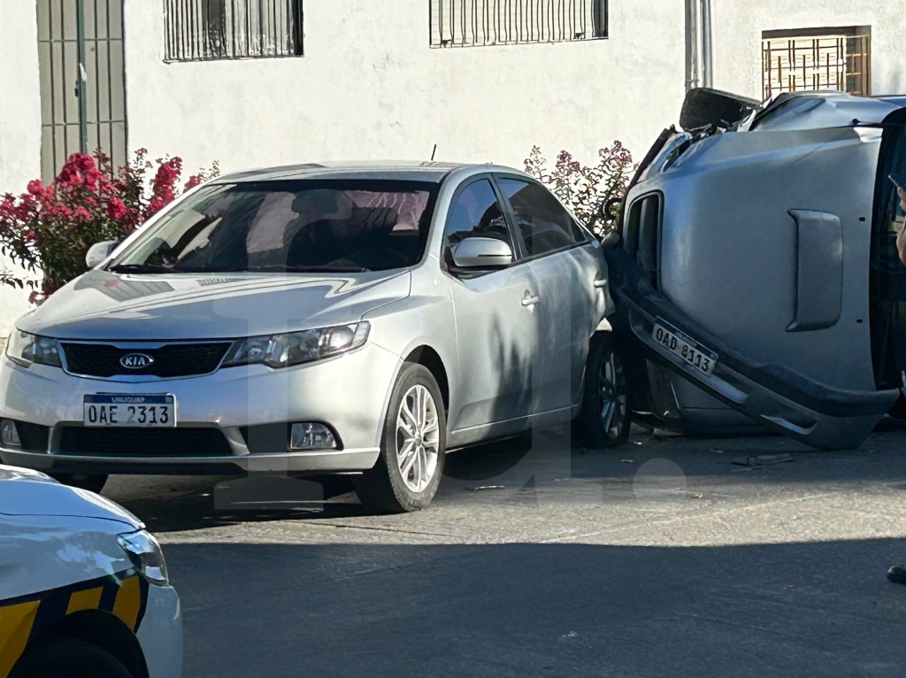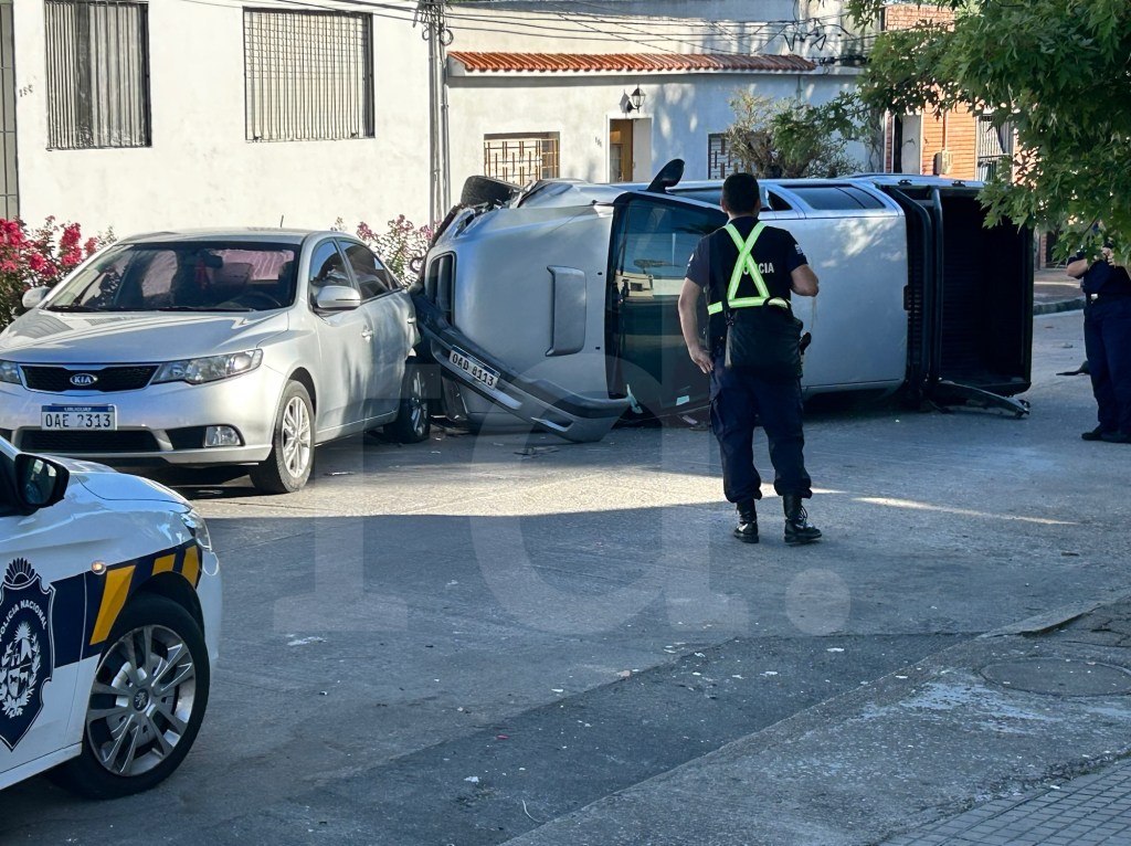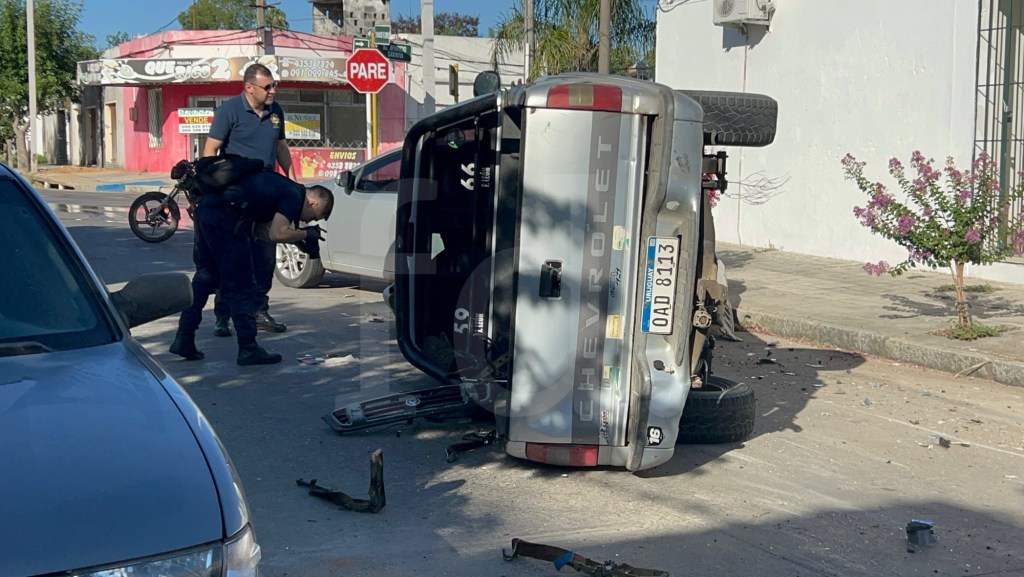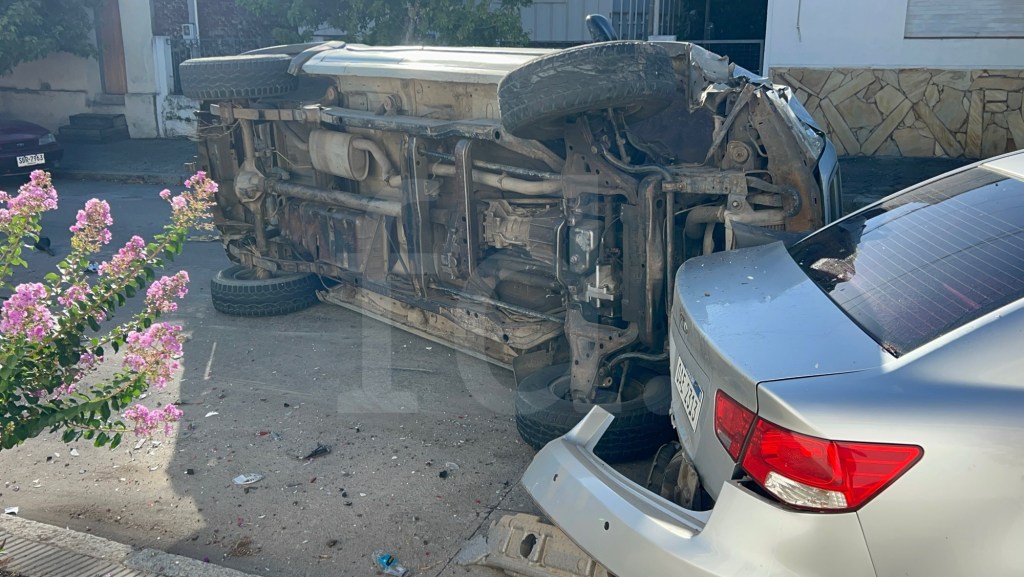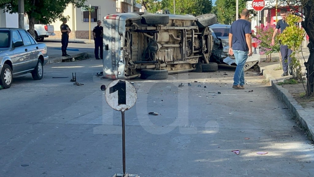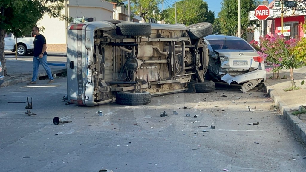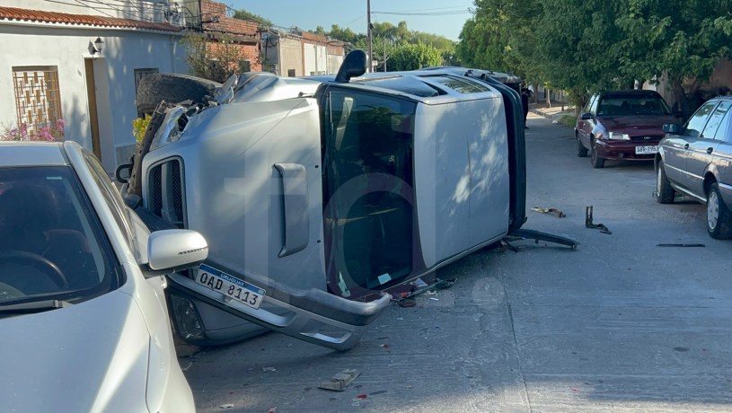 El choque fue de tal magnitud que la camioneta volcó y quedó lateralmente de lado izquierdo.
