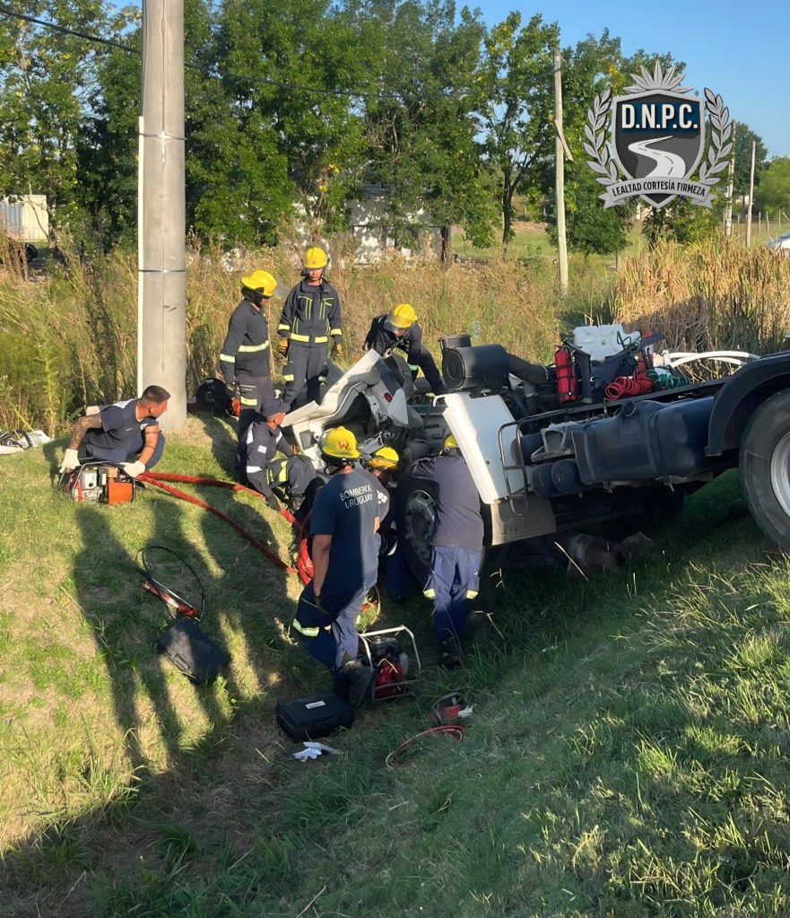 Según la información primaria, el hecho involucró a una camioneta que circulaba por Ruta 5 en senda de salida y un camión que intentaba cruzar hacia el Este, produciéndose una colisión fronto-lateral en el ingreso a la rotonda.