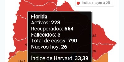 Florida: hay 236 activos y se elevó otra vez el índice color rojo