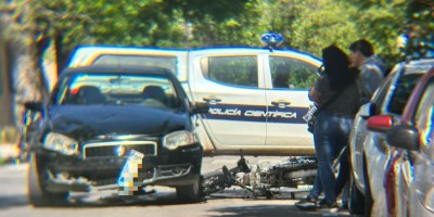 Choque entre auto y motocicleta en el centro