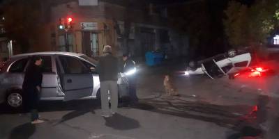 Aparatoso y rojo: impacto y vuelco en semáforo